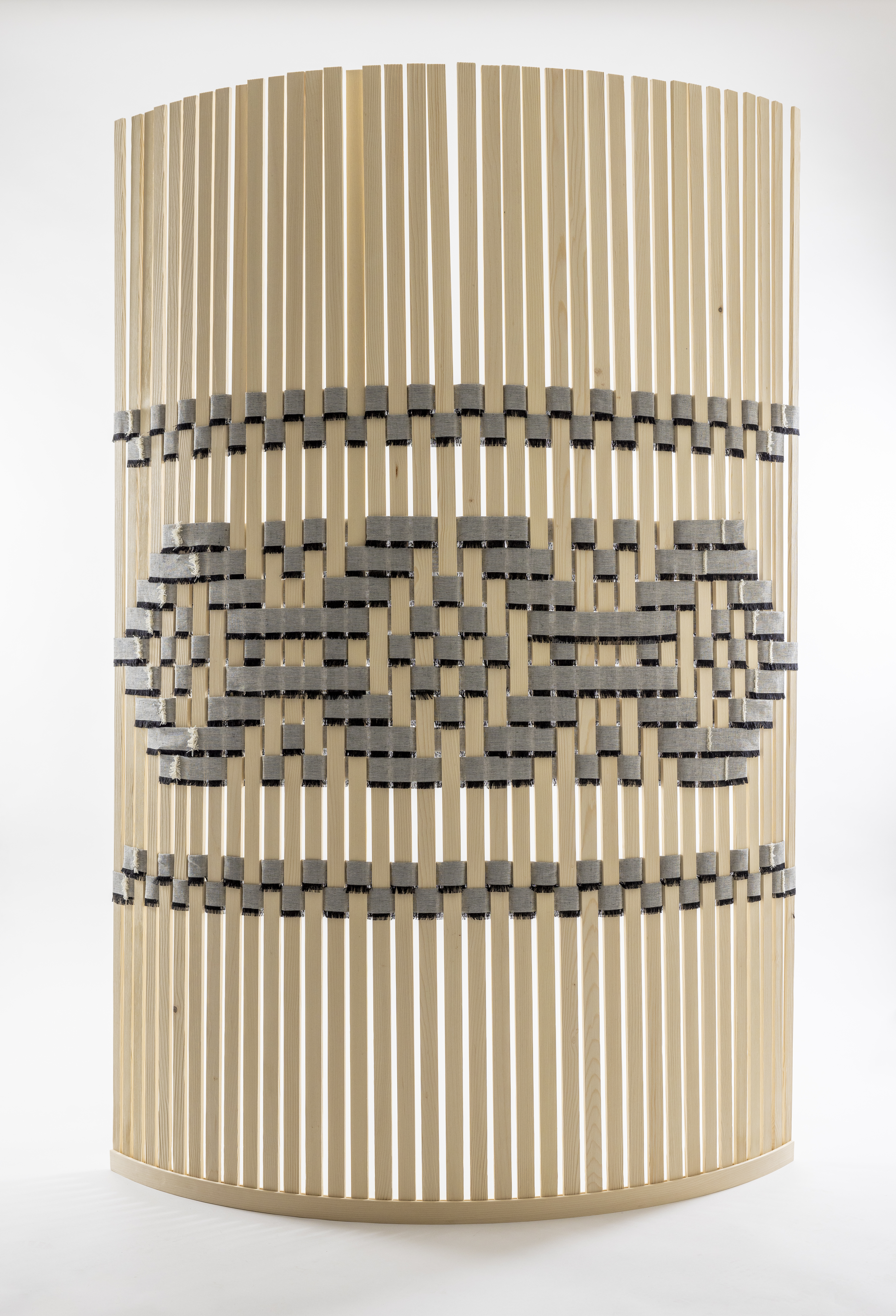 Ein Muster zieht die Blicke auf sich und sensibilisiert für eine jahrtausendalte Technik. Wie können wir fundiertes und erprobtes Wissen unserer Vorfahren ins Heute mitnehmen und respektvoll weiterentwickeln? Durch die Schritte Sensibilisieren - Mobilisieren - Transferieren. Die Aufmerksamkeit wird auf die Handwerkstechniken gelenkt. Im Dialog mit den Fachkräften sollen neue Ansätze und Lösungen für den Transfer gefunden werden, welche gemeinsam im gegenseitigen Respekt umgesetzt werden. Das Raumtrennobjekt STRIIFE steht für den Anfang der Vision, wie das regionale Handwerk der Handweberei Haslital in einer neuen Auslegung der Materialien, Technik und Gestaltung, einen Platz in der heutigen bewussten Wohnkultur findet. Der STRIIFE wird nach Gebrauch nicht zusammengerollt oder gefaltet, sondern bewusst als skulpturales Gestaltungselement platziert.
